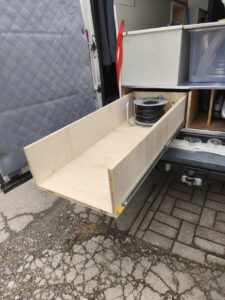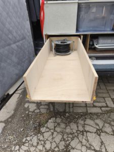 Holz hatte ich genug auf Vorrat, durch den WoMo Umbau meines Sohnes in der Werkstatt. So musste ich nur die Grundplatte für die Linke Seite kaufen.