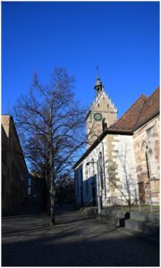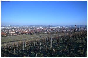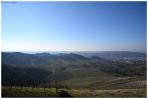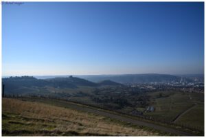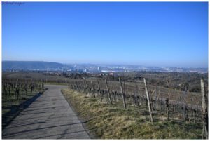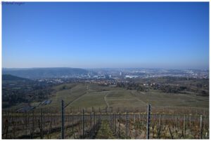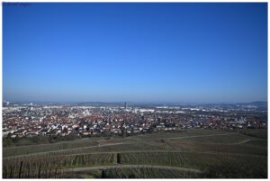 Meine Wanderung / Pilgerwanderung, startete ich um 9:45 Uhr am Kirchplatz in Fellbach. Bei gutem Wetter ca. 3° startet meine Reise – 1. Etappe Remstalwanderweg 2025. Los geht’s auf dem Kaisersträßle bergan durch Fellbach in Richtung Kappelberg. Durch die Weinberge über die Panorama-Terrasse bergauf. Die ersten Informationen erhält man auf den Hinweisschildern über den Wein. Die Fellbacherlage „Lämmler“ , gehört zu den Spitzenlage des Weinbaus um Fellbach. Eine wunderschöne Aussicht, je weiter man den Kappelberg erklimmt. Auf dem weiteren Weg, konnte ich Dank des guten Wetters, sowohl auf die Weinberge Richtung Stuttgart [Rotenberg, Mercedes-Benz-Arena], den angrenzenden „Goldberg“ bis nach Fellbach und das Neckartal entlang bis Münster blicken. [Bilder] Dann, wie es so ist – treffe ich eine Kollegen aus unserer „Stuttgarter Fotowalker Gruppe“, Jener auf den Weg zum Max-Eyth-See. Kurzer Austausch, dann setzt jeder seine Tour weiter fort. Am Esslinger Tor vorbei auf gut befestigten Wegen bis zur Kernenturm. Der Kernenturm, liegt im Schurwald und ist bewirtet. Gute Gelegenheit für die erste Pause bei heißem Kaffee und Käseschnitte. Den Turm [158 Stufen], habe ich nicht erklummen, dass soll einmal ein eigenes Projekt am frühen Morgen oder späten Abend werden.