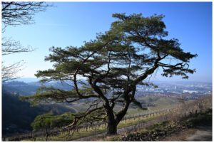 Kurze Pause mit einer tollen Aussicht auf die Gegenüber Seite, wo ich hergekommen bin. Noch kurz verweilt, und den „Museumswengert“ mit historischen Rebsorten und terrassenförmig angelegt betrachten dann weiter bergauf zu den 7 Linden.