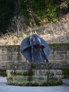 An einer Apfelwiese vorbei, wo viele Obstsorten angepflanzt wurden und mit einer tollen Beschreibung als Info hinterlegt wurden. Sollte ich im Herbst nochmals herkommen. Von Lobenrot, geht es über den Kulturlandschaftspfad (angelegt 2010) abwärts Richtung Strümpfelbach. Auf halbem Weg, passiere Ich die Skulpturenallee mit bronze Paaren, die mich begrüßten. Vorbei am Naturfreundehaus, einkehren „Nein“ ein andermal mit Frau oder Freunden. Nach dem Überqueren der Straße, führt der Weg weiter im Wald hinunter nach Strümpfelbach. Diesen Weg, kann ich nur bei gefrorenem oder trockenem Wetter empfehlen, war an diesem Tag sehr aufgeweicht und sumpfig. Na, ja Schuhe putzen ist dann angesagt.