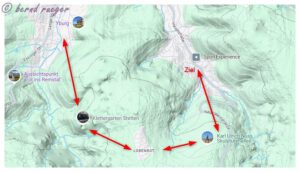 Strecke 15 km 470m – 440m Höhe – Laufzeit ca. 4,5 Stunden.