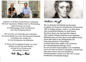 Schloss Lichtenstein Info Broschüre zum Schloss Lichtenstein Bildergalerie (04042025) Tagesausflug zum Schloss Lichtenstein auf der Schwäbischen Alb zurück